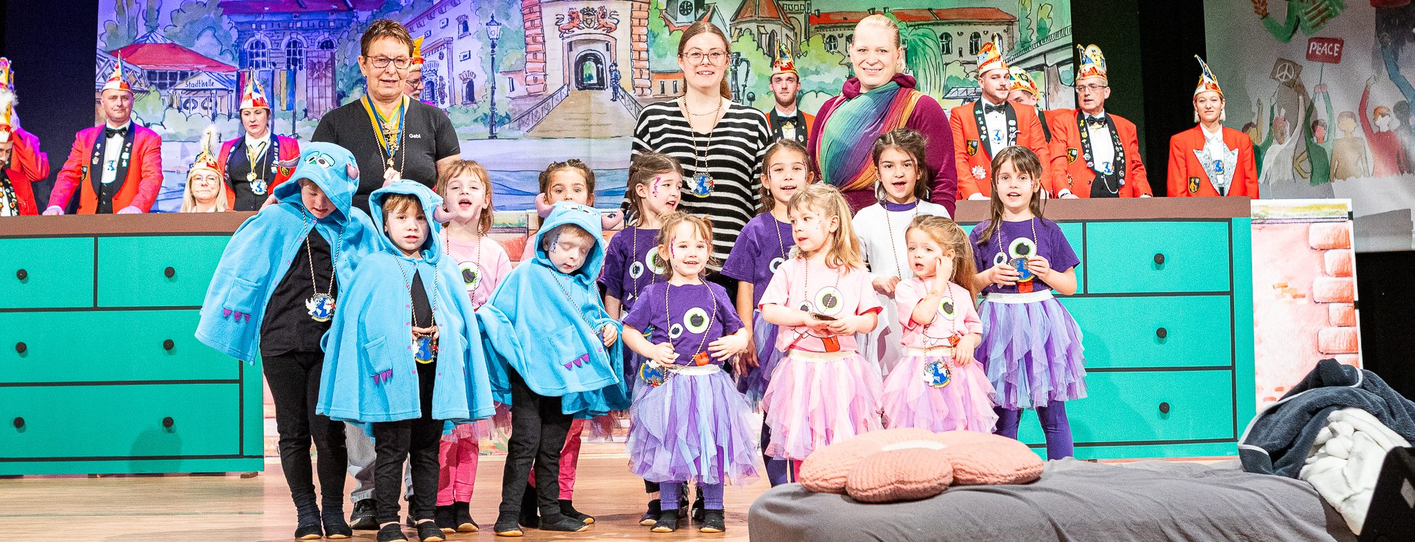 Einmal die Woche wird trainiert, um dann auf Prunksitzungen und bei Kindermaskenbällen unserem Publikum ein Lächeln aufs Gesicht zu zaubern. Das gelingt uns eigentlich immer. Und nicht zuletzt deshalb, weil wir jedes Jahr klasse Kostüme tragen. Wenn wir uns ganz viel Mühe geben, dann bekommen wir nach dem Training immer eine süße Belohnung und wenns mal nicht so klappt, dann bekommen wir eben einen süßen Motivationsvorschuß fürs nächste Training und dann klappts auch wieder.